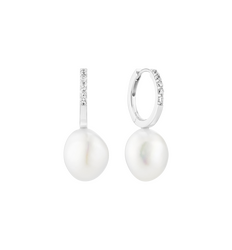 SIF Jakobs Padua Uno Creolen aus 925 Sterlingsilber mit Zirkonia und Süßwasser-Perlen